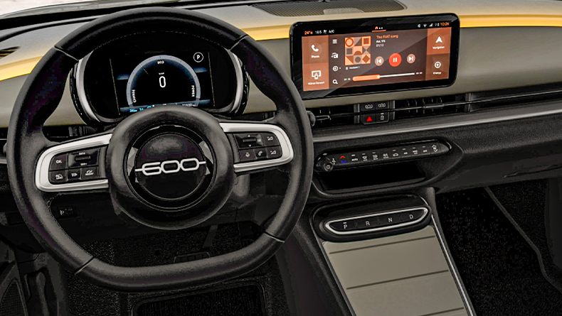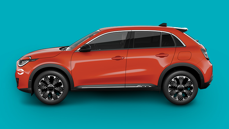 Kombinierte Werte für den Fiat 600 Elektro La Prima gem. WLTP: Energieverbrauch 15,2 kWh/100 km; CO2-Emissionen 0 g/km; CO2-Klasse: A;