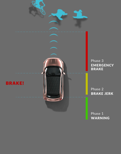 Der Autonome Notbremsassistent unterstützt dich durch akustische und visuelle Warnungen sowie eine gezielte Bremsung. Er erfasst potenzielle Gefahren und greift automatisch ein, um Kollisionen mit anderen Verkehrsteilnehmern zu vermeiden oder deren Auswirkungen zu minimieren.