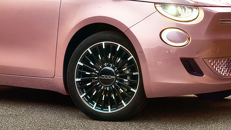 Der Fiat 500 Elektro La Prima besticht durch sein fesselndes Design. Mit ikonischen Details wie den verchromten Einstiegs- und Seitenzierleisten, den schwarz lackierten 17"-Leichtmetallfelgen mit Diamantfinish und dem exklusiven La Prima Logo ist es unmöglich, unbemerkt zu bleiben.